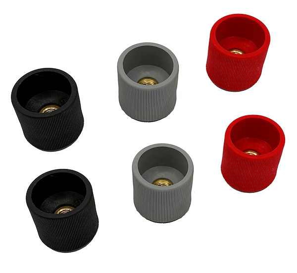This Hand Nut set replaces the connecotrs for service, comprises 6 hand nuts, two in red,grey & Black with an M8 internal female brass thread.