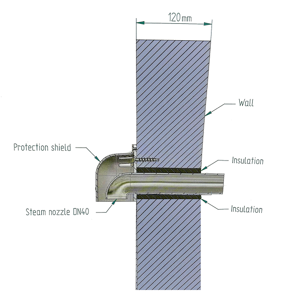 This Steam Nozzle with protective shield comes with the Hygromatic Stainless Steel Steam Nozzle with DN40mm Diameter pipe, along with the schematic diagram for installaton & outer white PVC protective sheild and 3 stainless steel screws to secure the protective cover to the steam nozzle outlet.